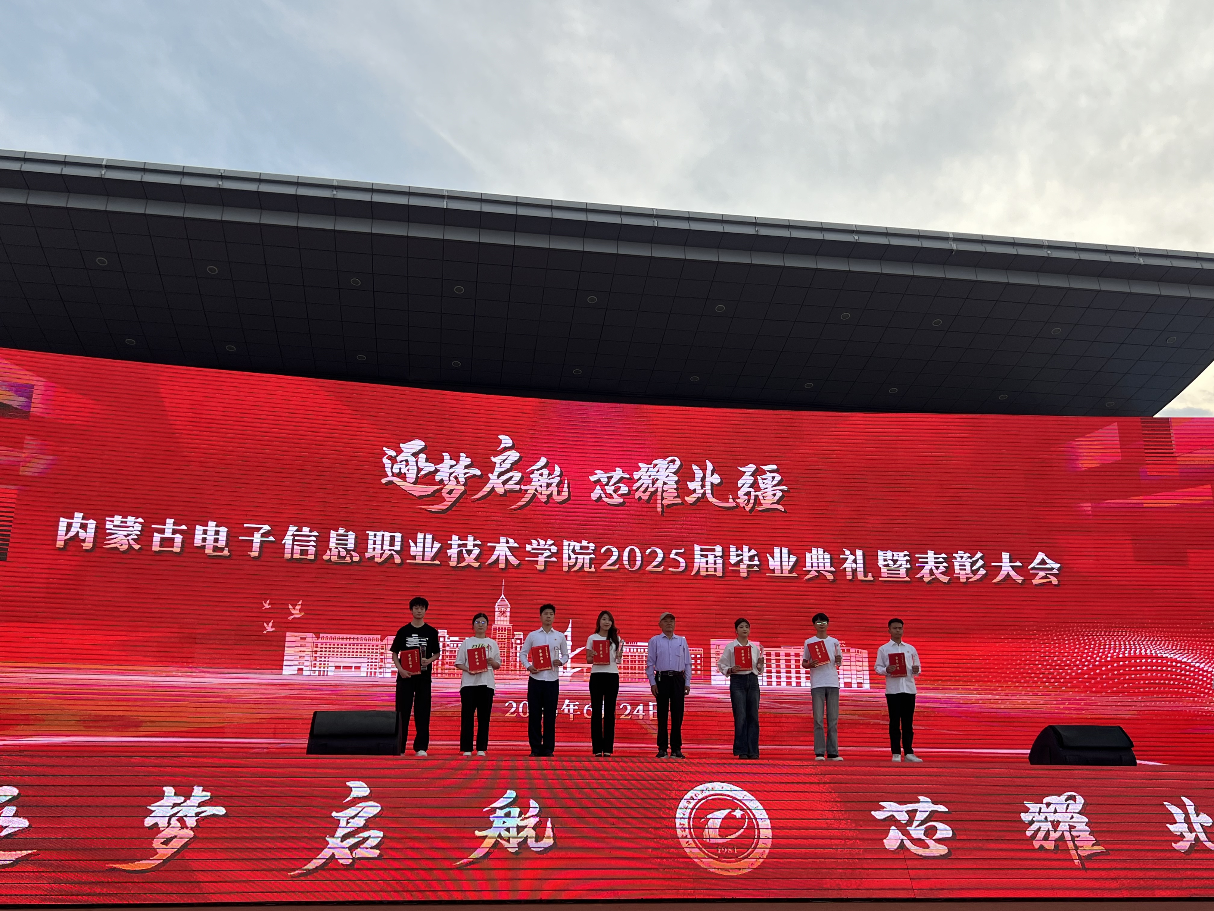 6月24日,内蒙古电子信息职业技术学院举行2025届毕业典礼暨表彰大会,16名优秀学生获得乌兰夫奖学金,乌兰夫基金会云晓明理事为获奖学生颁奖。